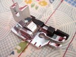 Fits the Featherweight! Stitch your 1/4-inch seams easily with the foot that has a little guide to keep your fabric edges perfectly aligned, or scrolling through the photos above, you can see how it can be nicely used for understitching, depending on how you align it to your seam. Foot will either have a chrome or black guide depending on inventory available at time of order.